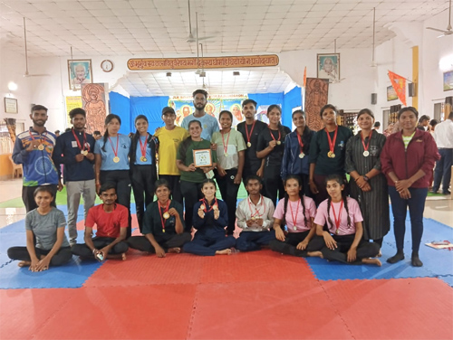 राजनांदगांव। स्थानीय केशर नगर स्थित जेएलएम गायत्री विद्यापीठ में नेशनल योगासन स्पोर्ट्स फेंडरेशन द्वारा आयोजित तृतीय जिला स्तरीय योगासन खेल स्पर्धा में दिव्य ज्योति योग क्लासेस के प्रशिक्षणार्थियों ने एक बार फिर से अपना दबदबा कायम रखते हुए अपने संस्थान का परचम लहराया। दिव्य योग ज्योति क्लासेस के योग प्रशिक्षक किशोर माहेश्वरी ने एक प्रेस विज्ञप्ति के माध्यम से बताया कि, उनके द्वारा प्रशिक्षित, प्रशिक्षणार्थियों ने विभिन्न आयु वर्गों में उत्कृष्ट खेल कौशल का जौहर दिखाते हुए अपना लोहा मनवाया और ढ़ेर सारे स्वर्ण, रजत और कांस्य पदक जीतकर अपने योग संस्थान और अपने माता-पिता का नाम एक बार फिर से रौशन किया। आगे उन्होंने बताया कि, सीनियर महिला आर्टिस्टिक और ट्रेडिंशनल दोनों ही स्पर्धाओं में जिले और प्रदेश की होनहार महिला योग खिलाड़ी दीक्षा ताम्रकार ने अपने उत्कृष्ट खेल कौशल का प्रदर्शन करते हुए स्वर्ण पदक पर अपना कब्जा जमाया। वहीं जूनियर पुरुष वर्ग में प्रवीण साहू ने रजत पदक पर अपना कब्जा जमाया। सीनियर महिला आर्टिस्टिक वर्ग में गुंजन सिन्हा और श्रुति सिन्हा ने स्वर्ण पदक पक्का किया, सौम्या यादव और रीना श्रीवास ने रजत और सोनिया वर्मा और सोनम वर्मा ने कांस्य पदक अपने नाम किया। इस प्रकार से तीनो ही शीर्ष पदक संस्था की झोली में आये। दूसरी ओर अंडर-18 आयु वर्ग के अंतर्गत ट्रेडिंशनल सिंगल में प्रवीण साहू ने रजत पदक अपने नाम किया। सीनियर ट्रेडिंशनल एकल में विक्रम कुमार वर्मा ने स्वर्ण और खिलेश्वर साहू ने कांस्य जीता। सीनियर आर्टिस्टिक पेयर में भी विक्रम कुमार वर्मा और खिलेश्वर साहू की जोड़ी ने बाजी मारते हूए स्वर्ण पदक पर अपना कब्जा जमाया। सोनिया वर्मा और सोनम वर्मा ने रिदमिक पेयर में स्वर्ण पदक जीता। जूनियर आर्टिस्टिक पेयर में मोहित सोनी और प्रवीण साहू ने स्वर्ण पदक पर कब्जा जमाया। वहीं जूनियर ट्रेडिशनल सिंगल इवेंट में भी मोहित सोनी और प्रवीण सोनी ने एक बार फिर से स्वर्ण पदक पर अपना कब्जा जमाया। साथ ही प्रवीण कुमार पटेल और खेमचंद लाउत्रे ने इसी स्पर्धा में रजत पदक हासिल किया। इस दौरान योग प्रशिक्षक किशोर माहेश्वरी के साथ वरिष्ठ खिलाड़ी जयश्री साहू, अतुल लहरे, लक्ष्मी शेंडे, गीता यादव और मोनिका साहू आदि उपस्थित थे।