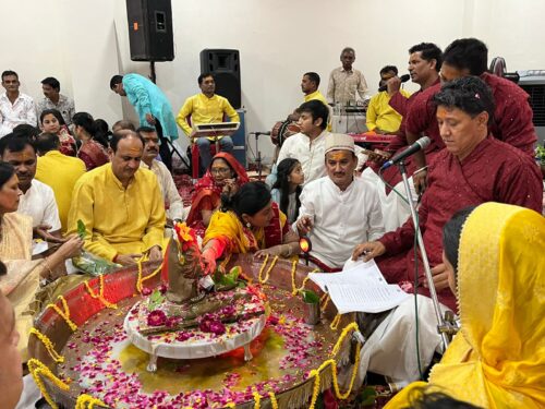 श्रीमती ममता महेश टावरी परिवार द्वारा रुद्राभिषेक का आयोजन किया गया जिसमें माहेश्वरी ट्रेडर्स परिसर में धर्मप्रेमियों ने उपस्थित होकर अभिषेक किये, सात शिवलिंग बनाई गई जिसमें सभी धर्मप्रेमियों ने चारों तरफ बैठकर अभिषेक किये, लगभग 100 से अधिक जोड़े ने भगवान श्री भोलेनाथ जी की पार्थिव शिवलिंग का रुद्राभिषेक किया .