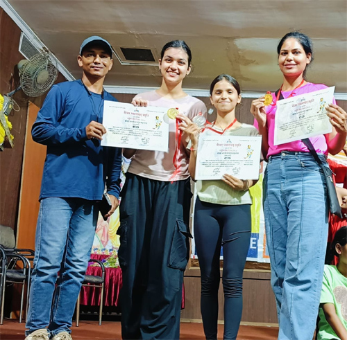 राजनांदगांव। क्रीड़ा भारती रायपुर महानगर प्रांत द्वारा आयोजित छत्तीसगढ़ राज्य स्तरीय योगासन खेल प्रतियोगिता में रिद्धि प्रीतवानी ने 14-18 आयु वर्ग में स्वर्ण पदक, दीक्षा ताम्रकार ने 18-28 आयु वर्ग में रजत पदक और इसी वर्ग में रितु सिंह ने कांस्य पदक जीता।