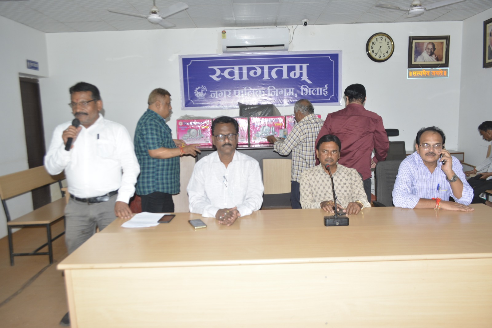 भिलाईनगर। भिलाई निगम में 62 वर्ष की आयु पूर्ण कर चुके 04 कर्मचारियों को ससम्मान विदाई दी गई। गौरतलब है निगम सभागार में सोमवार को 04 कर्मचारियों को बिदाई दी गई। निगम प्रशासन की ओर से कर्मचारियों को स्मृति चिन्ह, शाॅल और श्रीफल भेंट करते हुए सेवानिवृत्त होने वाले कर्मचारियों की अच्छे स्वास्थ्य और दीर्घायु की कामना किए। इसके पूर्व सेवानिवृत्त होने वाले कर्मचारियों ने भिलाई निगम में सेवाकाल के दौरान कार्य एवं अनुभव को साझा करते हुए सभी को सामंजस्य बनाकर कार्य करने के लिए प्रेरित किए।