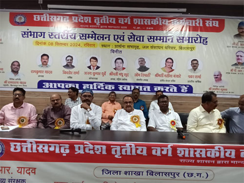 राजनांदगांव। छत्तीसगढ़ प्रदेश तृतीय वर्ग शासकीय कर्मचारी संघ (पंजीयन क्रमांक-249) का बिलासपुर संभाग स्तरीय कर्मचारी सम्मेलन एवं सेवा-सम्मान समारोह अमर अग्रवाल शहर विधायक एवं पूर्व मंत्री छत्तीसगढ़ शासन संघ के मुख्य आतिथ्य में संपन्न हुआ, जिसकी अध्यक्षता संघ के प्रदेश प्रमुख जीआर चंद्रा ने की। कार्यक्रम के विशिष्ट अतिथि संरक्षक पीआर यादव एवं अवधेश शुक्ला प्रांतीय महामंत्री थे।