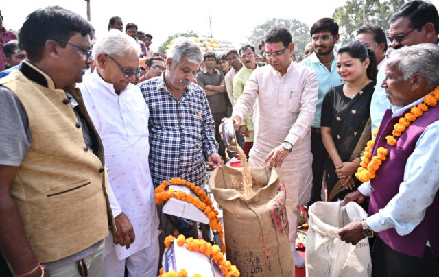 रायपुर : राजस्व मंत्री टंक राम वर्मा ने आज तिल्दा विकासखंड के ग्राम सांकरा में विधिवत पूजा अर्चना कर समर्थन मूल्य पर धान खरीदी का शुभारम्भ किया। इस अवसर पर उन्होंने कहा कि सरकार की सर्वाेच्च प्राथमिकता में से एक धान खरीदी का आज प्रदेश में प्रारम्भ हो गया है। मुख्यमंत्री श्री विष्णु देव साय के नेतृत्व में किसानों के जीवन में समृद्धि, आत्मनिर्भरता, विकास और खुशहाली के लिये योजनाओं का क्रियान्वयन किया जा रहा है। राज्य के सभी 2739 उपार्जन केंद्रों में 14 नवम्बर 2024 से 31 जनवरी 2025 तक किसानों से समर्थन मूल्य पर धान क्रय किया जायेगा। इस अवसर पर उन्होंने सांकरा उपार्जन केंद्र में शेड निर्माण के लिए 10 लाख रुपए की घोषणा की।