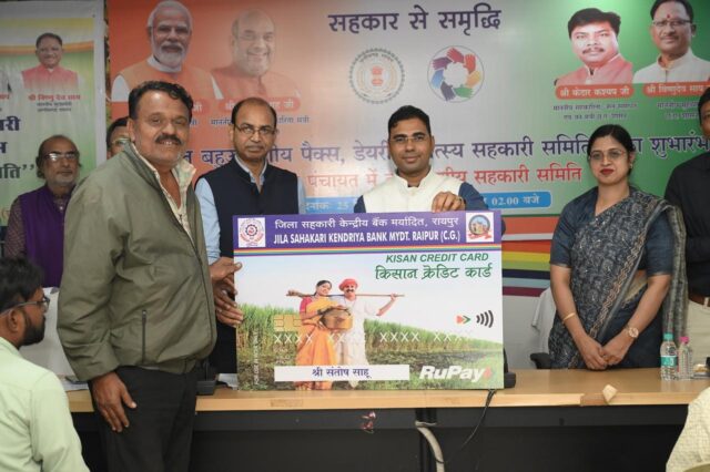 रायपुर : केंद्रीय गृह एवं सहकारिता मंत्री श्री अमित शाह बुधवार को राज्य स्तरीय सहकार से समृद्धि कार्यक्रम के तहत नवीन गठित बहुउद्देश्यीय मतस्य एवं दुग्ध समितियो का वर्चुअल शुभारंभ किया गया। इस दौरान सहकारिता विभाग के आयुक्त सह पंजीयक सहकारी संस्थाए श्री कुलदीप शर्मा ने किसानों को रुपे केसीसी कार्ड वितरित किया । साथ ही इस क्षेत्र मे उत्कृष्ट कार्य करने वाले कर्मचारियों को प्रशस्ति-पत्र देकर सम्मानित किया गया। वहीं दुग्ध समितियों को नवीन एटीम कार्ड का भी वितरण किया गया।
