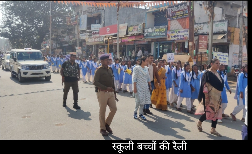 गरियाबंद। जिला मुख्यालय में एक जनवरी से चल रहे सड़क सुरक्षा माह को लेकर गुरुवार के सुबह स्कूली छात्राओं के द्वारा एसडीओपी निशा सिंहा,यातायात पुलिस और स्कूल स्टॉप की उपस्थिति में यातायात संबंधित नारे लगाते हुए रैली निकाली गई।ज्ञात हो कि एक माह तक चलने वाले इस सड़क सुरक्षा माह का आयोजन पुलिस अधीक्षक निखिल राखेचा के निर्देश में किया जा रहा है।इस आयोजन के द्वारा विभिन्न प्रकार से आयोजन कर लोगो को यातायात के प्रति जागरूक किया जा रहा है।जिसमे स्कूल कालेज में कार्यशाला, स्कूली छात्राओं को रंगोली और छात्रों को भाषण के माध्यम से समझाई दिया गया।साथ ही यातायात पुलिस द्वारा नगर के साथ नजदीक के ग्रामों में नुक्कड सभा भी आयोजन किया गया।आज के इस रैली के माध्यम से रैली में शामिल छात्राओं के द्वारा नशे की हालत में वाहन न चलाने,मोटरसाइकिल में तीन सवारी नहीं बैठने के साथ हेलमेट पहनना अनिवार्य और चार पहिया वाहन चलाते वक्त सीट बेल्ट लगाने संबंधित नारे लगाए गए।