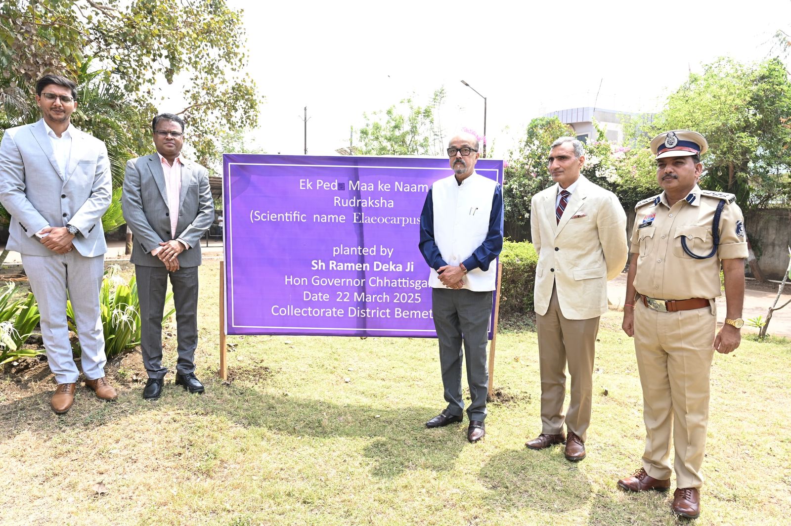 बेमेतरा. राज्यपाल श्री रमेन डेका ने बेमेतरा कलेक्ट्रेट परिसर में एक पेड़ माँ के नाम अभियान के तहत रुद्राक्ष का पौधा लगाया । इस दौरान उन्होंने पर्यावरण संरक्षण और धरती को हरा भरा बनाने सभी को अपने आसपास पौधे लगाने के लिए प्रेरित किया।