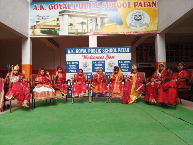 पाटन। शनिवार को एक. के.गोयल पब्लिक स्कूल पाटन में नवरात्रि का उत्सव बड़े धूमधाम से मनाया गया। इस अवसर पर स्कूल के प्राचार्य द्वारा पूजा अर्चना कर कार्यक्रम की शुरुआत की गई। बच्चों के साथ-साथ शिक्षकों द्वारा भी गरबा एवं डांडिया किया गया एवं यह पर्व हर्ष और उल्लास से मनाया गया। छात्र एवं छात्राओं द्वारा नौ देवियों का स्वरूप तैयार किया गया एवं पूजा अर्चना संपन्न की गई। ए. के.गोयल स्कूल में शिक्षा के साथ-साथ धार्मिक संस्कारों की भी शिक्षा दी जाती है।