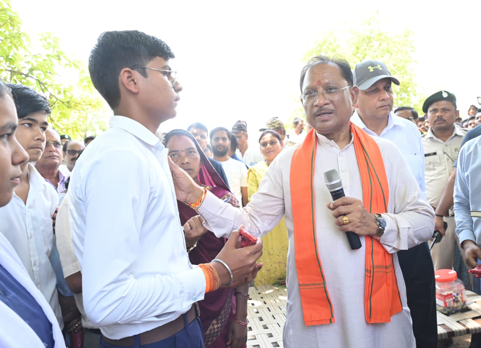 गौरतलब है कि मुख्यमंत्री श्री विष्णु देव साय की पहल पर इन दिनों राज्य में सुशासन तिहार का आयोजन हो रहा है। इसके तीसरे चरण में समाधान शिविरों लगातार प्रदेशवासियों को उनकी समस्या, मांग और शिकायतों के समाधान के संबंध में जानकारी दी जा रही है। कई स्थानों पर मुख्यमंत्री श्री साय स्वयं पहुंच रहे हैं और लोगों से सीधे संवाद कर रहे हैं। इस कड़ी में मुख्यमंत्री श्री विष्णु देव साय सुदूर अंचलों में शासकीय योजनाओं की जमीनी हकीकत जानने आकस्मिक रूप से पहुंच रहे हैं। गुरुवार 8 मई को सीएम श्री साय माथमौर पहुंचे। मुख्यमंत्री के अपने गांव के पास आने की खबर लगने पर ग्रामीणों के साथ कई विद्यार्थी भी प्रदेश के मुखिया से मिलने पहुंचे थे। इस दौरान सुदूर वनांचल माथमौर से लगे शासकीय उच्चतर माध्यमिक विद्यालय कुवांरपुर में पढ़कर बेहतर अंक लाने वाली और स्कूल में टॉप करने वाली 10वीं की छात्रा कंगना बैगा (83.67%), मीनाक्षी शुक्ला (82.83%) तथा 12वीं के विद्यार्थी विद्यासागर तिवारी, सचिन कुमार बांधे व कु. शशि सिंह को पेन देकर मुख्यमंत्री ने सम्मानित किया। मुख्यमंत्री ने विद्यार्थियों से उनके भविष्य में शिक्षा और उनकी करियर प्लानिंग पर बात की।