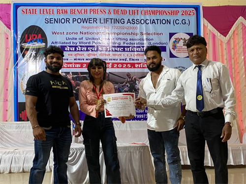 राजनांदगांव। वर्ल्ड पॉवर लिफ्टिंग एसोसिएशन लंदन से मान्यता प्राप्त सीनियर पॉवर लिफ्टिंग एसोसिएशन छत्तीसगढ़ के तत्वाधान में गत 24 एवं 25 मई को मंगल भवन, एकता नगर, उतई, दुर्ग में आयोजित राज्य स्तरीय जूनियर, सीनियर मास्टर्स महिला एवं पुरुष बैंच प्रेस एवं डेड लिफ्ट दोनों ही प्रतियोगिताओं में सिंधी कालोनी, लालबाग की होनहार बेटी ट्विंकल रूचंदानी ने सीनियर 48 किलोग्राम वजन वर्ग में क्रमशः बैंच प्रेस में 25 किलोग्राम वजन उठाकर और डैडलिफ्ट में 60 किलोग्राम वजन उठाकर प्रथम स्थान हासिल कर स्वर्ण पदक पर कब्जा जमाते हुए संस्कारधानी राजनांदगांव का नाम प्रदेश में रौशन किया। उनके पिता तिलोक रुचंदानी और माता श्रीमती पूजा रुचंदानी ने बताया कि, ट्विंकल बचपन से ही प्रतिभावान और मेहनती रही है और उसका सपना देश के लिए पदक जीतना है। यह उपलब्धि उसी दिशा में ट्विंकल का एक छोटा सा प्रयास था। उन्होंने आगे बताया कि, परिवार से भी ट्विंकल को पूरा-पूरा सहयोग मिलता है और हमारी यही कोशिश रही है कि, ट्विंकल अपने सपने पूरे करें और उसके इस सफर में, हमारा जो भी हरसंभव प्रयास होगा वो हम कर रहे हैं और करते रहेंगे।