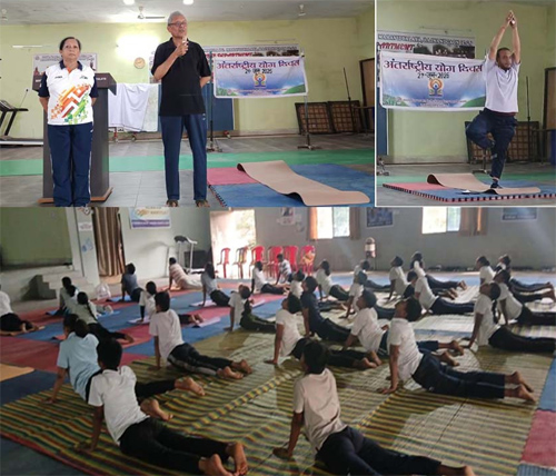 योग प्रशिक्षक खिलेन्द्र कुमार सोनी ने शासन द्वारा जारी योगाभ्यास कम (प्रोटोकॉल) के अनुसार विभिन्न आसन जिसके अंतर्गत वृक्षासन, पादहस्तासन, अर्धचकासन, त्रिकोणासन, भद्रासन, वज्रासन, उष्ट्रासन, शाशकासन, शवासन एवं प्राणायाम के अंतर्गत कपालभाति, अनुलोम विलोम, भ्रामरी प्राणायाम, शीतली प्राणायाम आदि कराया एवं उससे होने वाले लाभ के बारे में जानकारी दी।
