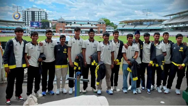 भारतीय अंडर-19 टीम इन दिनों इंग्लैंड दौरे पर है। फिलहाल दोनों देशों की युवा टीमों के बीच दो मैचों की टेस्ट सीरीज जारी है, जिसका पहला मुकाबला मंगलवार को ड्रॉ पर समाप्त हुआ था। दूसरा मुकाबला 20 जुलाई से केल्म्सफोर्ड में खेला जाएगा। इस मैच से पहले आयुष म्हात्रे के नेतृत्व वाली भारतीय अंडर-19 टीम ने गुरुवार को ऐतिहासिक लॉर्ड्स क्रिकेट ग्राउंड का दौरा किया। इस दौरान कोच ऋषिकेश कानिटकर भी मौजूद रहे।