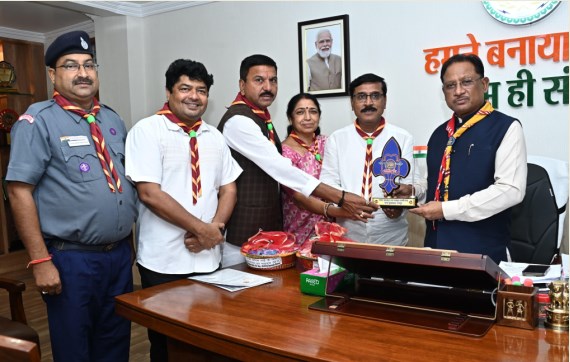 रायपुर – मुख्यमंत्री विष्णुदेव साय से उनके निवास कार्यालय में भारत स्काउट्स एवं गाइड्स छत्तीसगढ़ के प्रतिनिधिमंडल ने सौजन्य मुलाकात की। प्रतिनिधिमंडल ने मुख्यमंत्री श्री साय को भारत स्काउट्स एवं गाइड्स छत्तीसगढ़ द्वारा प्रदेश भर में चलाए गए ‘एक राखी सैनिक भाइयों के नाम’ अभियान की जानकारी दी।