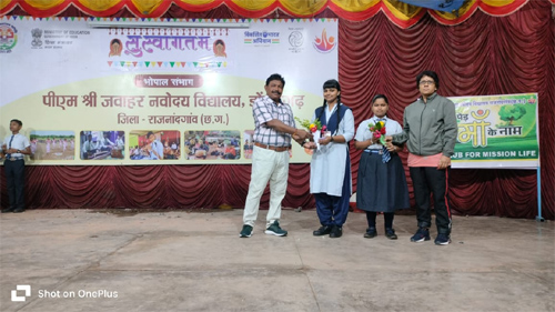 डोंगरगढ़। विगत दिवस फिरोजपुर (पंजाब) में संपन्न हुई राष्ट्रीय बास्केटबाल प्रतियोगिता में जवाहर नवोदय विद्यालय डोंगरगढ़, जिला राजनांदगांव की छात्रा खुशबू यादव (कक्षा 12वीं) एवं छात्र मोहनीश कंकरायने (कक्षा 9वीं) ने भाग लेकर विद्यालय और क्षेत्र का गौरव बढ़ाया। वहीं, कर्नाटक के बेलगांव में आयोजित एनवीएस नेशनल प्रतियोगिता में विद्यालय के छात्र साकेत साहू (कक्षा 11वीं) ने क्रिकेट में शानदार प्रदर्शन करते हुए जीत दर्ज की।