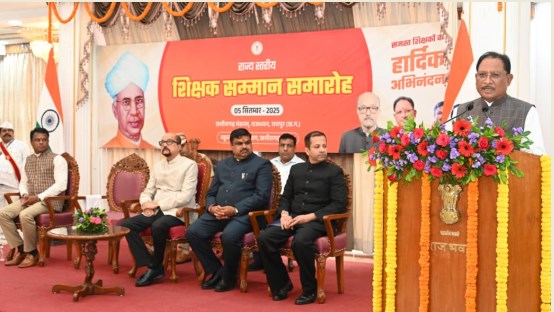 समारोह की अध्यक्षता कर रहे मुख्यमंत्री विष्णु देव साय ने कहा कि शिक्षक ही सच्चे राष्ट्र निर्माता होते हैं। वे देश को ऐसे राष्ट्रभक्त नागरिक देते हैं, जो आगे चलकर समाज और राष्ट्र की उन्नति में योगदान देते हैं। जिस प्रकार दीपक स्वयं जलकर दूसरों को प्रकाश देता है, उसी प्रकार शिक्षक भी अनेक कठिनाइयों के बावजूद ज्ञान का उजाला फैलाते हैं। उन्होंने कहा कि छत्तीसगढ़ राज्य अपनी स्थापना के 25 वर्ष पूरे कर रहा है और इस रजत जयंती वर्ष में प्रदेश ने हर क्षेत्र में उल्लेखनीय प्रगति की है। शिक्षा विकास का मूलमंत्र है और इसके बिना जीवन अधूरा है। पिछले वर्षों में शिक्षा के क्षेत्र में भी व्यापक विस्तार हुआ है। आज प्रदेश में 20 से अधिक विश्वविद्यालय, 15 से ज्यादा मेडिकल कॉलेज और राष्ट्रीय ख्याति प्राप्त संस्थान जैसे आईआईटी, आईआईएम, एम्स तथा लॉ विश्वविद्यालय स्थापित हैं।