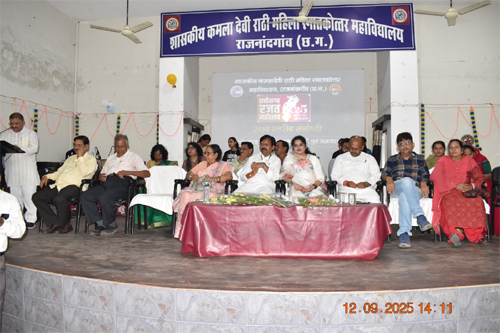 राजनांदगांव। शासकीय कमलादेवी राठी महिला स्नातकोत्तर महाविद्यालय, राजनांदगांव में महाविद्यालय स्तर पर दिनांक 12.09.2025 को छत्तीसगढ़ रजत जयंती महोत्सव के उपलक्ष्य में छत्तीसगढ़ का विकास, चुनौतियां एवं समाधान विषय पर संगोष्ठी का आयोजन किया गया।