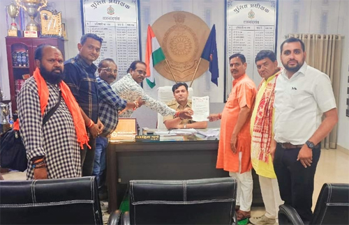 नशे की खुली बिक्री पर रोक लगाने और पारंपरिक गरबा आयोजन की मांग को लेकर विहिप-बजरंग दल ने एसपी को सौंपा ज्ञापन