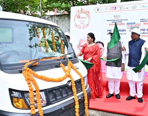 नगरीय निकायों की स्वच्छता हेतु समर्पित डोर-टू-डोर कचरा कलेक्शन वाहनों को दिखाई हरी झंडी