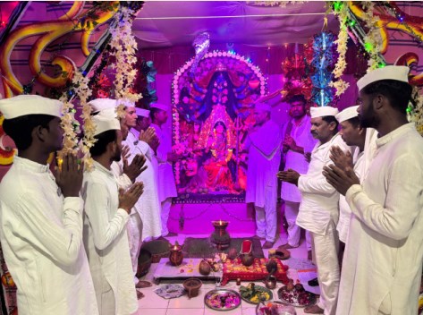 रायपुर : नवरात्रि के पावन अवसर पर केन्द्रीय जेल रायपुर का वातावरण श्रद्धा, भक्ति और उत्साह से सराबोर हो गया। जेल परिसर में मूर्तिकार बंदियों द्वारा मिट्टी से माँ दुर्गा की तीन भव्य प्रतिमाएं तैयार की गईं है। इनमें से एक प्रतिमा महिला प्रकोष्ठ में और दो प्रतिमाएं पुरुष प्रकोष्ठ में स्थापित कर विशेष पूजा-अर्चना, भजन-कीर्तन और सांस्कृतिक कार्यक्रमों का आयोजन किया जा रहा है।