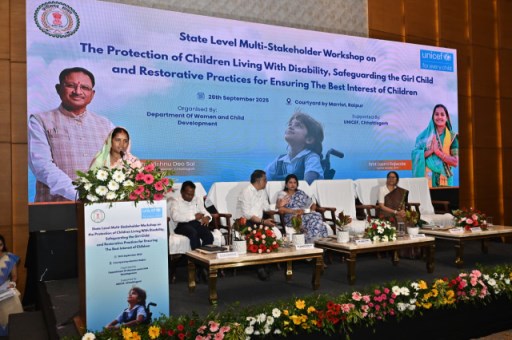 रायपुर : महिला एवं बाल विकास विभाग एवं यूनिसेफ के संयुक्त तत्वावधान में राजधानी रायपुर के एक होटल में “दिव्यांग बच्चों के संरक्षण, बालिकाओं की सुरक्षा तथा बच्चों के सर्वाेत्तम हित के लिए पुर्नस्थापनात्मक व्यवहार” विषय पर राज्य स्तरीय बहु-हितधारक कार्यशाला का सफल आयोजन किया गया।