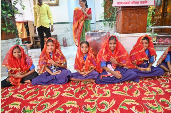 पूरे 9 दिवस प्रतिदिन कन्या भोज में सभी कन्याओं को सुश्री पायल जैन समाज सेविका द्वारा फल एवं शिक्षण उपयोगी सामग्री का वितरण भेंट स्वरूप वितरण किया जा रहा है पायल जैन द्वारा सभी कन्या माताओं को तिलक पूजन कर सभी कन्या माताओं को चुनरी ओढाकर सामग्री का वितरण किया जा रहा है।
