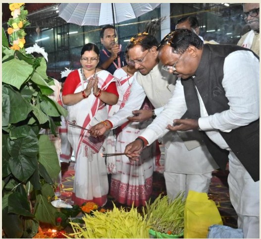 मुख्यमंत्री श्री साय ने भगवान करम राजा की विधिवत पूजा-अर्चना कर प्रदेशवासियों के सुख, समृद्धि एवं खुशहाली की कामना की। इसके साथ ही उन्होंने भारत माता के तैलचित्र पर दीप प्रज्ज्वलित कर कार्यक्रम का शुभारंभ किया।