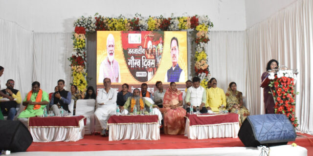 कार्यक्रम को संबोधित करते हुए पूर्व जिला पंचायत अध्यक्ष श्री देवालाल ठाकुर ने जनजातीय समाज के नायकों एवं महापुरूषों ने स्वाधीनता संग्राम के अलावा देश और समाज की रक्षा के लिए जब भी उनकी आवश्यकता पड़ी है अपना सर्वोच्च न्यौछावर करते हुए राष्ट्र एवं समाज के नवनिर्माण में महत्वपूर्ण योगदान दिया है। इस अवसर पर उन्होंने धरती आबा भगवान बिरसा मंुडा, शहीद वीर नारायण सिंह, शहीद गैंद सिंह नायक के अमर गाथाओं पर भी प्रकाश डाला। इस अवसर पर स्वागत भाषण प्रस्तुत करते हुए कलेक्टर श्रीमती दिव्या उमेश मिश्रा ने जिले वासियों एवं जनजातीय समाज के लोगों को धरती आबा भगवान बिरसा मुंडा जी के अवसर पर आयोजित जनजातीय गौरव दिवस की हार्दिक बधाई एवं शुभकामनाएं भी दी। श्रीमती मिश्रा ने  जनजातीय गौरव दिवस के आयोजन के उद्देश्यों तथा आदि कर्मयोगी अभियान के अंतर्गत बालोद जिले के 186 गांवों में सफलतापूर्वक आयोजित किए गए लाभ संतृप्ति शिविरों के आयोजनों के संबंध में प्रकाश डाला। श्रीमती मिश्रा ने कहा कि जिले में आदि कर्मयोगी अभियान के अंतर्गत किए गए उल्लेखनीय कार्यों के फलस्वरूप राष्ट्रपति श्रीमती द्रौपदी मुर्मू द्वारा बालोद जिले को स्क्रीन फेलिसिटेशन अवार्ड प्रदान किया गया है। समारोह में कलेक्टर श्रीमती दिव्या उमेश मिश्रा ने जनजातीय गौरव दिवस के अवसर पर मुख्यमंत्री श्री विष्णुदेव साय द्वारा प्रेषित किए गए पत्र का भी वाचन किया गया। समारोह में जनजातीय समाज के स्वतंत्रता सेनानियों के परिजनों तथा विभिन्न क्षेत्रों में उल्लेखनीय उपलब्धि कार्य करने वाले समाज के प्रतिभाओं, प्रतिभाशाली विद्यार्थियों तथा राष्ट्रीय स्तर के खेल प्रतियोगिता में शामिल होने वाले खिलाड़ियों को प्रशस्ति पत्र प्रदान कर सम्मानित भी किया गया। इस अवसर पर विभिन्न शिक्षण संस्थानों के विद्यार्थियों के द्वारा रंगारंग  सांस्कृतिक कार्यक्रमों तथा वंदे मातरम गीत की सुमधुर प्रस्तुति भी दी गई।