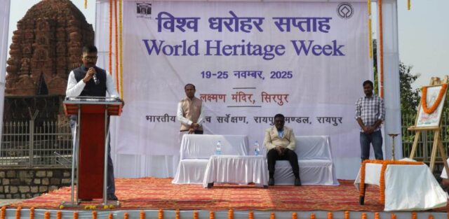 सिरपुर / विश्व विरासत सप्ताह का आयोजन सिरपुर स्थित प्रसिद्ध लक्ष्मण मंदिर परिसर में उत्साहपूर्वक आयोजन किया गया। यह कार्यक्रम विरासत संरक्षण के प्रति जनजागरूकता बढ़ाने तथा भारत की समृद्ध सांस्कृतिक धरोहर पर गर्व की भावना को मजबूत करने के उद्देश्य से आयोजित किया गया। कार्यक्रम का उद्घाटन सिरपुर विशेष क्षेत्र विकास प्राधिकरण के मुख्य कार्यकारी अधिकारी श्री गनवीर धम्मशील ने किया। विश्व विरासत सप्ताह 25 नवम्बर तक जारी रहेगा।