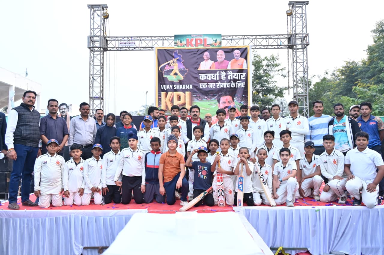 कवर्धा / कवर्धा विधानसभा क्षेत्र में खेल प्रतिभाओं को प्रोत्साहित करने की दिशा में एक नई पहल करते हुए उपमुख्यमंत्री एवं कवर्धा विधायक श्री विजय शर्मा ने आज विधायक कार्यालय कवर्धा में “विजय शर्मा कवर्धा प्रीमियर लीग” के पोस्टर का विधिवत विमोचन किया। इस अवसर पर उन्होंने खिलाड़ियों का उत्साहवर्धन करते हुए स्वयं बल्ले से प्रतीकात्मक शॉट भी लगाया। यह प्रतियोगिता विधानसभा स्तर पर आयोजित होने जा रही है, जिसका आगाज आगामी 13 दिसंबर से होने जा रहा है। इस प्रतियोगिता की खास बात यह है कि इसमें कवर्धा विधानसभा के 07 मंडलों की टीमें हिस्सा लेंगी। ग्रामीण मंडल को ग्राम पंचायत वार और कवर्धा शहर को वार्डों से वार्डवार टीमों का गठन किया गया है। प्रतियोगिता टेनिस बॉल क्रिकेट मैच के रूप में खेली जाएगी। उपमुख्यमंत्री श्री शर्मा ने प्रतियोगिता में भाग लेने वाले कवर्धा विधानसभा के सभी 07 मंडलों की टीमों के लिए तैयार विशेष मैच जर्सी को भी विधिवत लॉन्च किया गया।