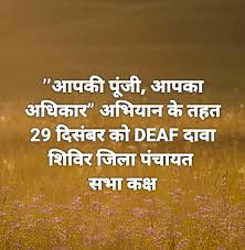 अंबिकापुर / जिले के जमाकर्ताओं को उनकी अदावा (Unclaimed) जमा राशि के प्रति जागरूक करने एवं दावा प्रक्रिया में सहयोग प्रदान करने के उद्देश्य से “आपकी पूंजी, आपका अधिकार” अभियान के अंतर्गत जमाकर्ता शिक्षा एवं जागरूकता निधि (DEAF) दावा शिविर का आयोजन 29 दिसंबर 2025 को प्रातः 11 बजे से जिला पंचायत सभा कक्ष में किया जाएगा।