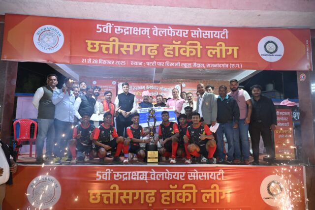 राजनांदगांव। 5वीं रुद्राक्षम् वेलफेयर सोसाइटी छत्तीसगढ़ हॉकी लीग अखिल भारतीय हॉकी प्रतियोगिता का समापन, फाइनल मैच एवं पुरस्कार वितरण समारोह सफलतापूर्वक संपन्न हुआ।
