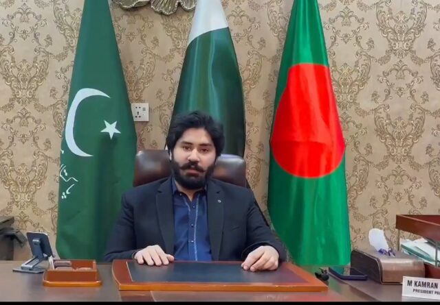 बांग्लादेश की अंतरिम सरकार के मुखिया मोहम्मद यूनुस और पाकिस्तान के बीच भारी घनिष्ठता देख्नने को मिल रही है. इसी कड़ी में पाकिस्तान मुस्लिम लीग-नवाज (PML-N) के एक नेता के बयान ने हलचल पैदा कर दी है. पाकिस्तानी प्रधानमंत्री शहबाज शरीफ की पार्टी PML-N के नेता कामरान सईद उस्मानी ने एक वीडियो जारी किया है. वीडियो में उनके साथ पाकिस्तान और बांग्लादेश के झंडे दिखाई दे रहे हैं. इस बयान में उन्होंने दावा किया कि अगर बांग्लादेश पर किसी तरह का दबाव या हमला होता है तो पाकिस्तान ढाका के साथ खड़ा रहेगा.