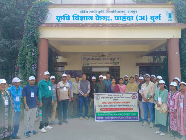 कृषि क्षेत्र में नवाचारों के आदान-प्रदान एवं जलवायु परिवर्तन की चुनौतियों के अनुरूप टिकाऊ खेती को बढ़ावा देने के उद्देश्य से झारखंड राज्य के रांची जिले के कृषकों के एक दल ने छत्तीसगढ़ के दुर्ग जिले का अंतर-राज्यीय अध्ययन भ्रमण किया। यह पहल राज्यों के मध्य तकनीकी सहयोग एवं अनुभव साझेदारी को सुदृढ़ करने की दिशा में महत्वपूर्ण कदम है। भ्रमण के दौरान कृषक दल ने पाटन विकासखंड के ग्राम करगा का दौरा कर बिना जुताई (जीरो टिलेज) पद्धति से गेहूं उत्पादन एवं अधिक तापमान सहनशील उन्नत किस्म ‘कनिष्का’ के प्रदर्शन का अवलोकन किया। साथ ही असिंचित क्षेत्रों में धान कटाई उपरांत खेत की नमी का उपयोग करते हुए उतेरा पद्धति से तिवड़ा की खेती तथा मेड़ पर कम अवधि वाली ‘राजेश्वरी फूले’ अरहर की खेती की तकनीक का निरीक्षण किया। स्थानीय प्रगतिशील कृषकों से संवाद कर दल ने कम लागत में अधिक उत्पादन एवं बेहतर लाभ की संभावनाओं पर विस्तार से जानकारी प्राप्त की। कृषक दल ने कृषि विज्ञान केंद्र, पाहंदा (अ) का भी भ्रमण किया, जहाँ वैज्ञानिकों द्वारा धनिया, तिवड़ा, चना, सरसों एवं हल्दी की वैज्ञानिक खेती, कम लागत आधारित वर्मीकम्पोस्ट उत्पादन, गुणवत्तापूर्ण बीज उत्पादन तथा उद्यानिकी नर्सरी प्रबंधन के संबंध में विस्तृत मार्गदर्शन प्रदान किया गया। किसानों ने जैविक एवं संसाधन-संरक्षण आधारित तकनीकों में विशेष रुचि व्यक्त की। भ्रमण कार्यक्रम में झारखंड कृषि विभाग से श्री विकास कुमार उपस्थित रहे। तकनीकी मार्गदर्शन हेतु कृषि विज्ञान केंद्र के वरिष्ठ वैज्ञानिक एवं प्रमुख डॉ. विजय जैन, डॉ. कमल नारायण वर्मा, डॉ. ललिता रामटेके, डॉ. आरती टिकरिहा, श्रीमती सृष्टि तिवारी एवं कु. हर्षना चंद्राकर ने किसानों को विस्तृत जानकारी प्रदान की। झारखंड के कृषकों ने इस अध्ययन भ्रमण को अत्यंत उपयोगी बताते हुए प्राप्त तकनीकों को अपने क्षेत्रों में लागू करने की प्रतिबद्धता व्यक्त की। यह पहल राज्यों के मध्य ज्ञान एवं नवाचार के आदान-प्रदान को प्रोत्साहित कर कृषि क्षेत्र को अधिक सुदृढ़ एवं लाभकारी बनाने में सहायक सिद्ध होगी।
