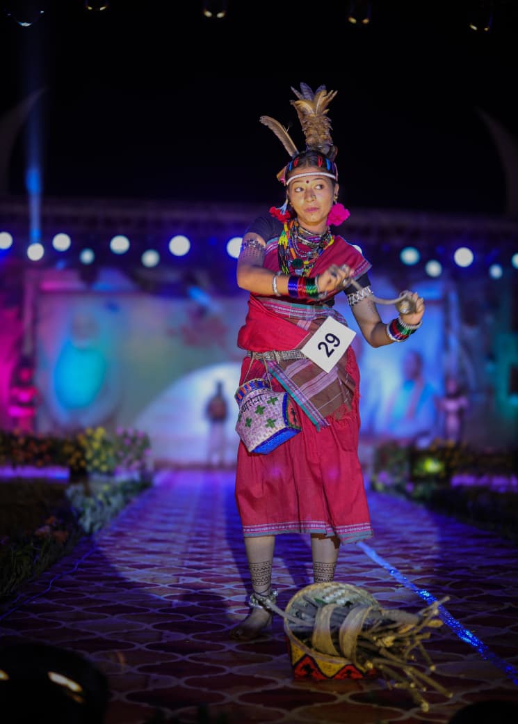 नवा रायपुर स्थित आदिवासी संग्रहालय में 13 एवं 14 मार्च 2026 को आयोजित ‘आदि पर्व 2026’ में छत्तीसगढ़ की समृद्ध आदिवासी संस्कृति और परंपराओं की भव्य झलक देखने को मिली। इस आयोजन में प्रदेश की विभिन्न जनजातियों के प्रतिभागियों ने अपनी पारंपरिक वेशभूषा, लोक नृत्य, गीत और सांस्कृतिक परंपराओं की आकर्षक प्रस्तुति दी। इस कार्यक्रम में नारायणपुर जिले के अबूझमाड़ क्षेत्र से शामिल हुई प्रतिभागी वनिता नेताम ने पारंपरिक जनजातीय वेशभूषा में मंच पर अपनी संस्कृति की शानदार प्रस्तुति दी। उनकी पारंपरिक पोशाक और आभूषणों ने कार्यक्रम में विशेष आकर्षण पैदा किया और उपस्थित दर्शकों का ध्यान अपनी ओर खींचा।