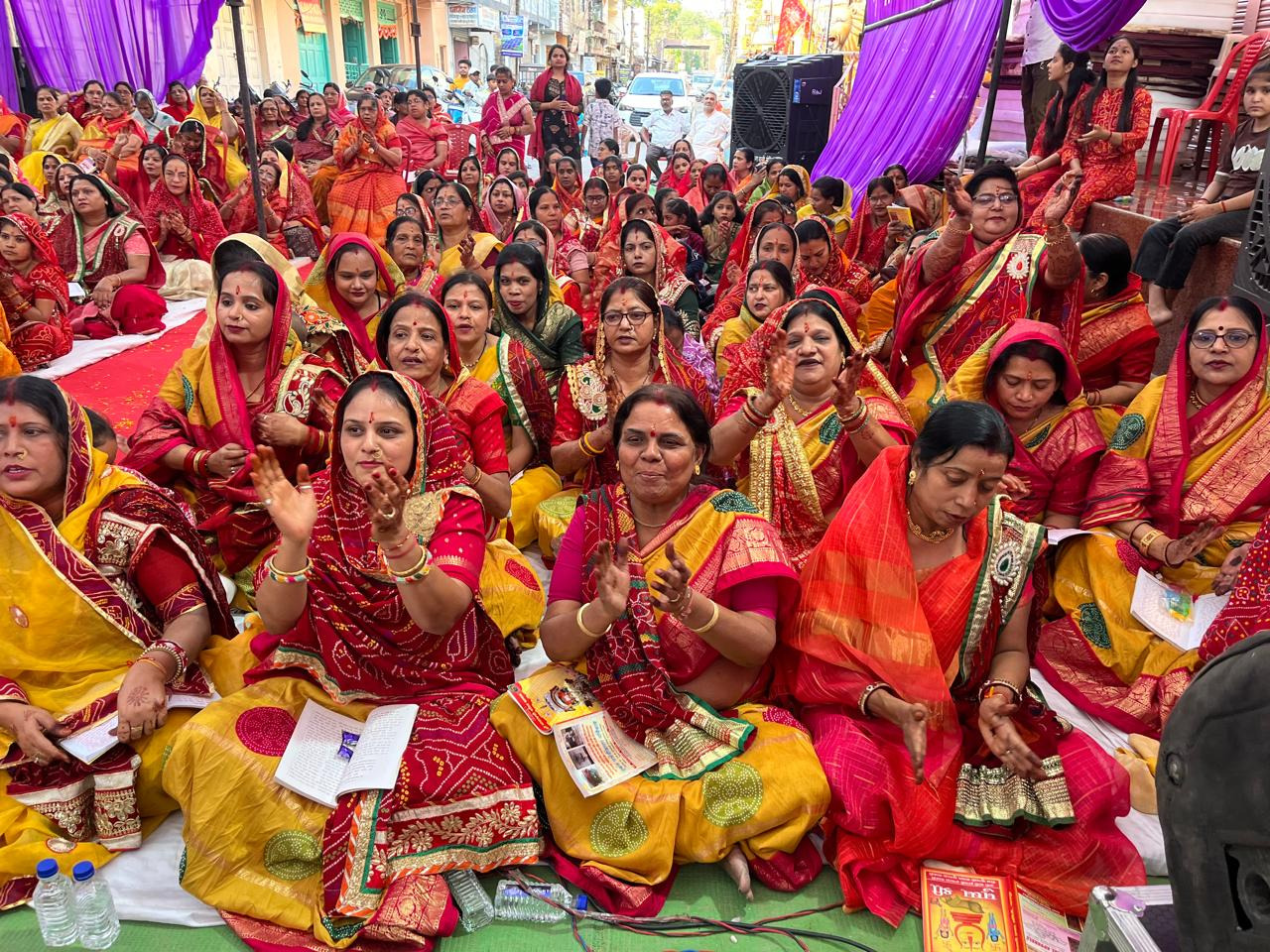 मंगलपाठ के आयोजन में मीना अग्रवाल शांता भूतड़ा डां मानसी गुलाटी ममता टावरी मनीषा राठी अर्चला शर्मा सरिता शर्मा अनिता अग्रवाल चंचल शर्मा किरण शर्मा चंचल ललित शर्मा सुमन बंटी शर्मा किरण सेन प्रतिभा पुरोहित शोभा खंडेलवार शिल्पी शर्मा प्रज्ञा शर्मा प्रगति शर्मा गायत्री शर्मा सिंधु सेन अम्बिका पांडेय सुमन शर्मा प्रेमलता शर्मा अनिता शर्मा मनोरमा शर्मा प्रीति राजगढ़िया सारिका शर्मा सुनीता अग्रवाल सुनीता गुप्ता सीमा शर्मा संगीता शर्मा रूकमणी गुप्ता शोभा गुप्ता सीमा शर्मा मधु शर्मा कविता शर्मा आभा शर्मा बबिता गुप्ता कल्पना राजपूत लक्ष्मी यादव पिंकी साहू ममता शर्मा ममता अग्रवाल रचना खण्डेलवाल कुलेश्वरी जायसवाल संध्या वर्मा एवं सैकड़ो महिलाएं उपस्थित हुए.