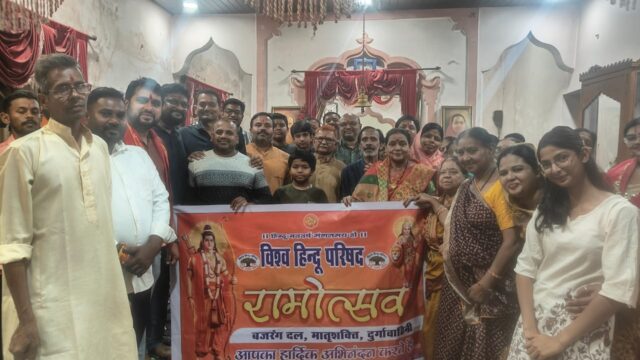 राजनांदगांव। जूनी हटरी स्थित श्रीराम मंदिर में रामोत्सव का आयोजन श्रद्धा, भक्ति और उल्लास के साथ किया गया। प्रतिवर्ष की तरह इस वर्ष भी विश्व हिंदू परिषद, बजरंग दल एवं मातृशक्ति दुर्गावाहिनी राजनांदगांव द्वारा शहर के विभिन्न प्रखंडों एवं सभी वार्डों में रामोत्सव मनाने का प्रयास किया जा रहा है, जिसे धर्मप्रेमी नागरिकों का भरपूर सहयोग और समर्थन मिल रहा है।